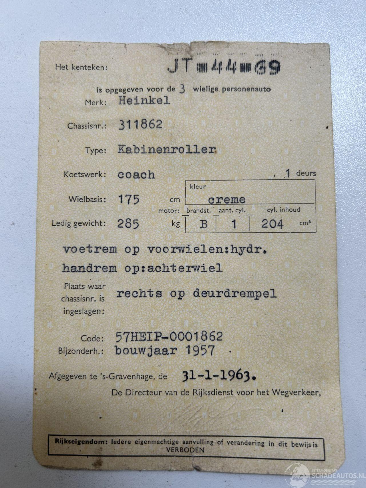 damaged HEINKEL KABINENROLLER € 6.950