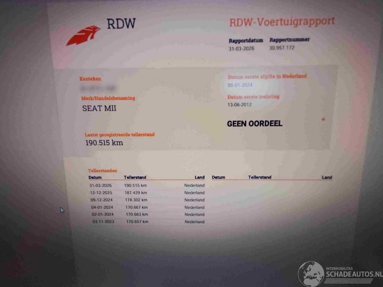 dañado SEAT SEAT MII VENDIDO