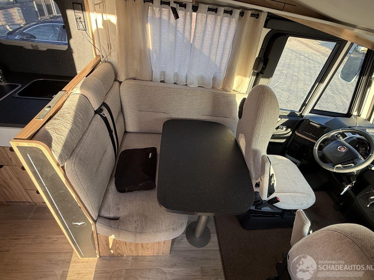 badkamer en slaapgedeelte. Lengte: 699 cm Breedte: ca. 230 cm Hoogte: ca. 285 cm Zitplaatsen: 4 (tot 5 bij maaltijd) Slaapplaatsen: Tot 4 personen Motor: Fiat 2