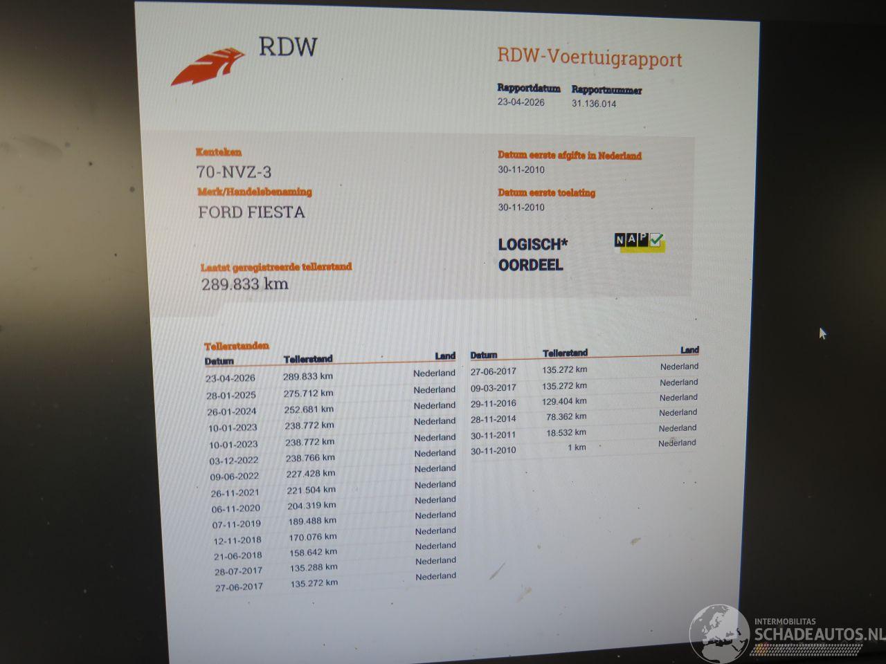 Modell: FIESTA 1.2 Limited 2010-11 Airco 5 Drs PARKEERSCHADE