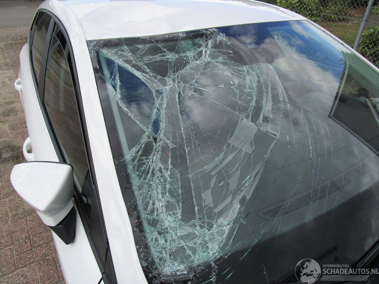 voorruit en dakrand zijn beschadigd.