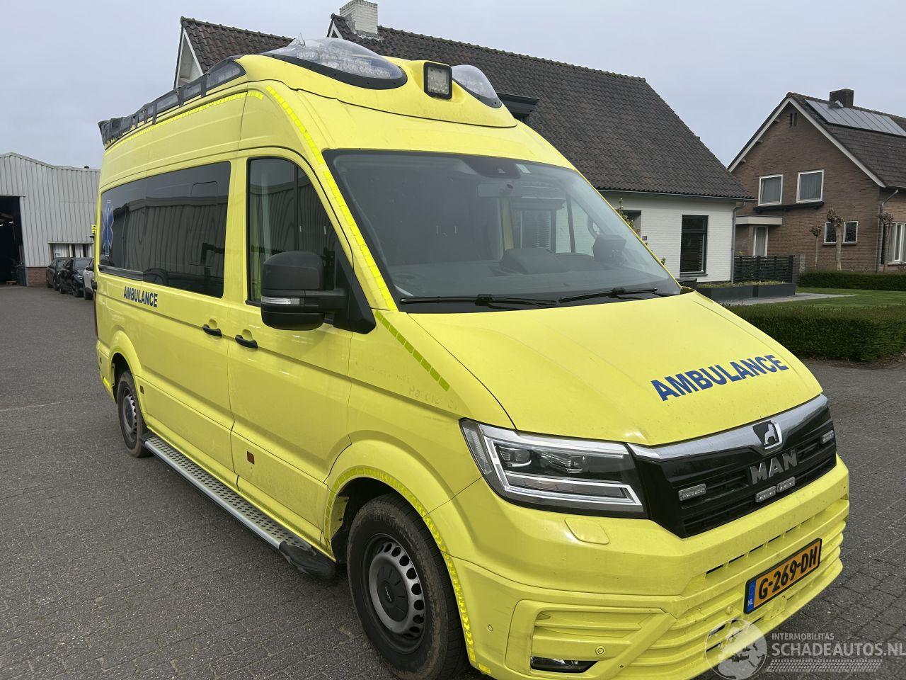 Hele nette rijdbare MAN Ambulance met een lichte schade aan R dakrand is polyester. Pas nog verstuivers en turbo vernieuwd.