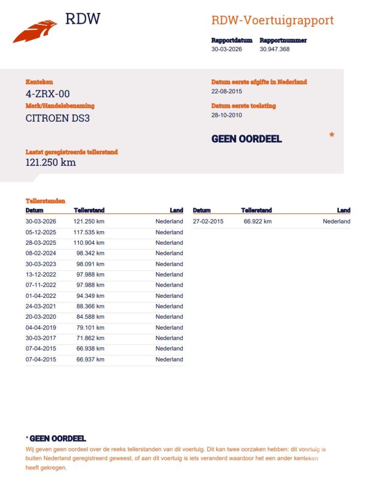 Matkamittarin lukema: 121.250 KM