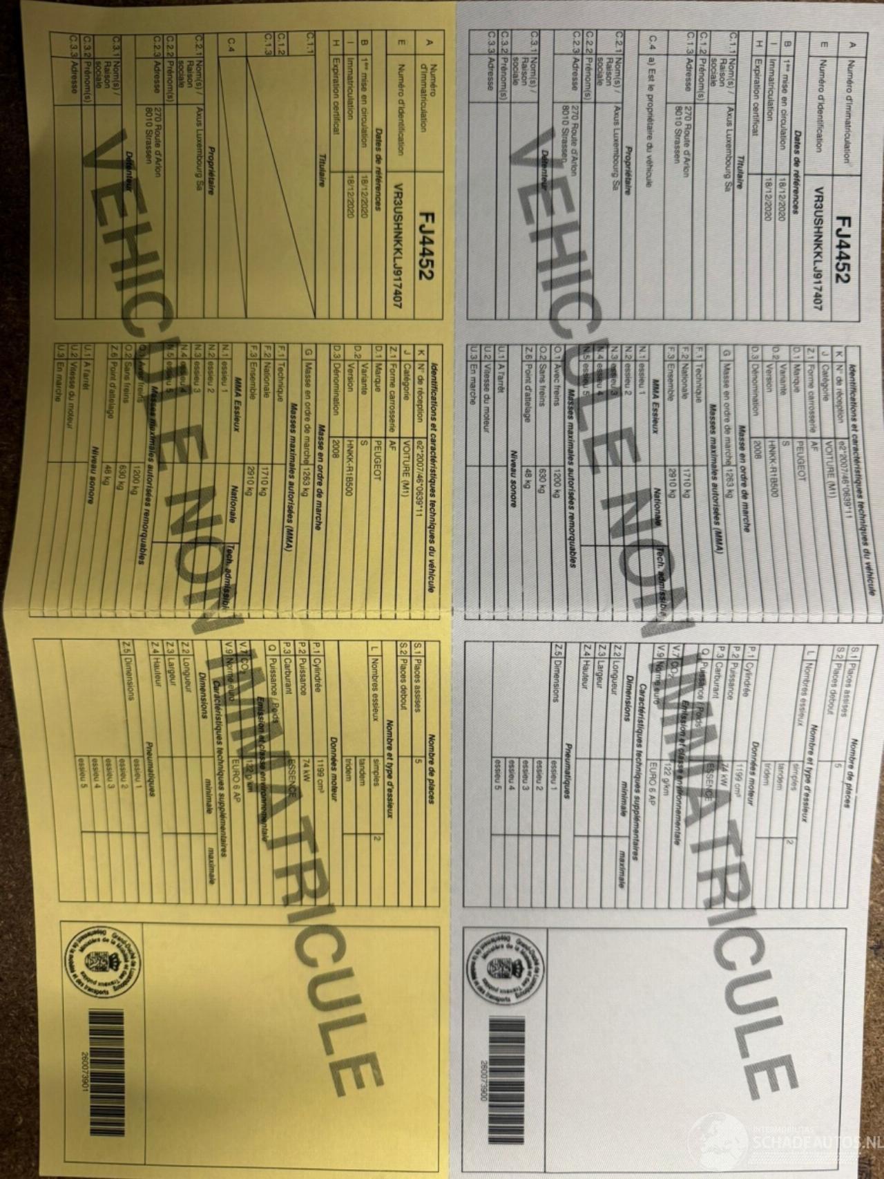Numéro de chassîs: VR3USHNKKLJ91****
